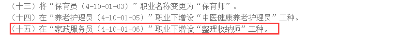 近幾年在國內(nèi),整理收納行業(yè)逐漸興起,被國家相關(guān)機構(gòu)重視,并逐漸建立健全整理收納行業(yè)相關(guān)標(biāo)準(zhǔn)和相關(guān)職業(yè)規(guī)劃體系。2021年1月15日,在人社部網(wǎng)站公示的《關(guān)于對擬發(fā)布集成電路工程技術(shù)人員等職業(yè)信息進行公示的公告》一文中,明確了在“家政服務(wù)”職業(yè)下增設(shè)“整理收納師”工種。
